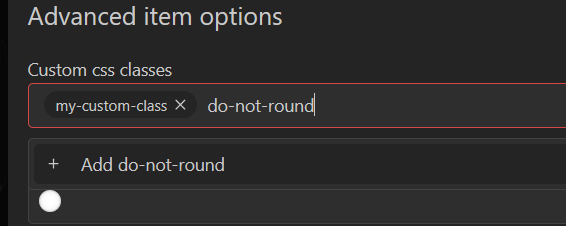 If you want to apply the styles only for one widget, you can define custom class names only for that widget. To do that, enter edit mode on your board, click the three dots of your widget, click Edit item and click Advanced options. Then, you can enter as many custom classes as you'd like: